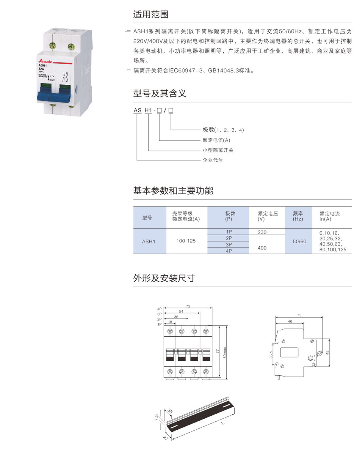 ASH1-125 小型隔离开关
