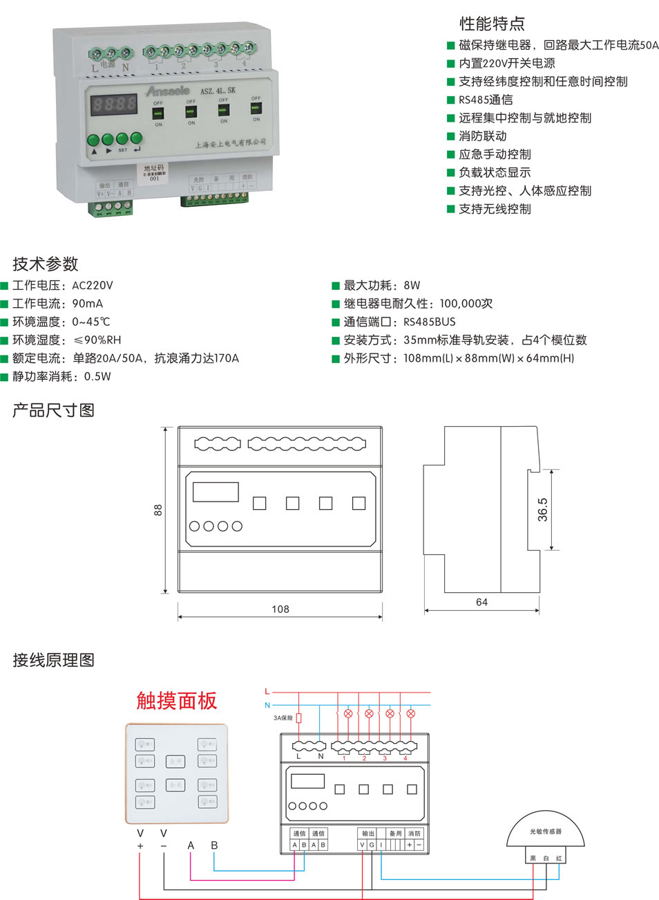 ASZ.4L.SK 带经纬度智能照明控制模块