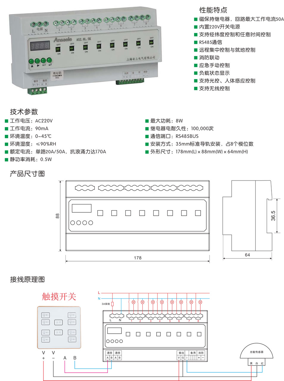 ASZ.8L.SK 带经纬度智能照明控制模块