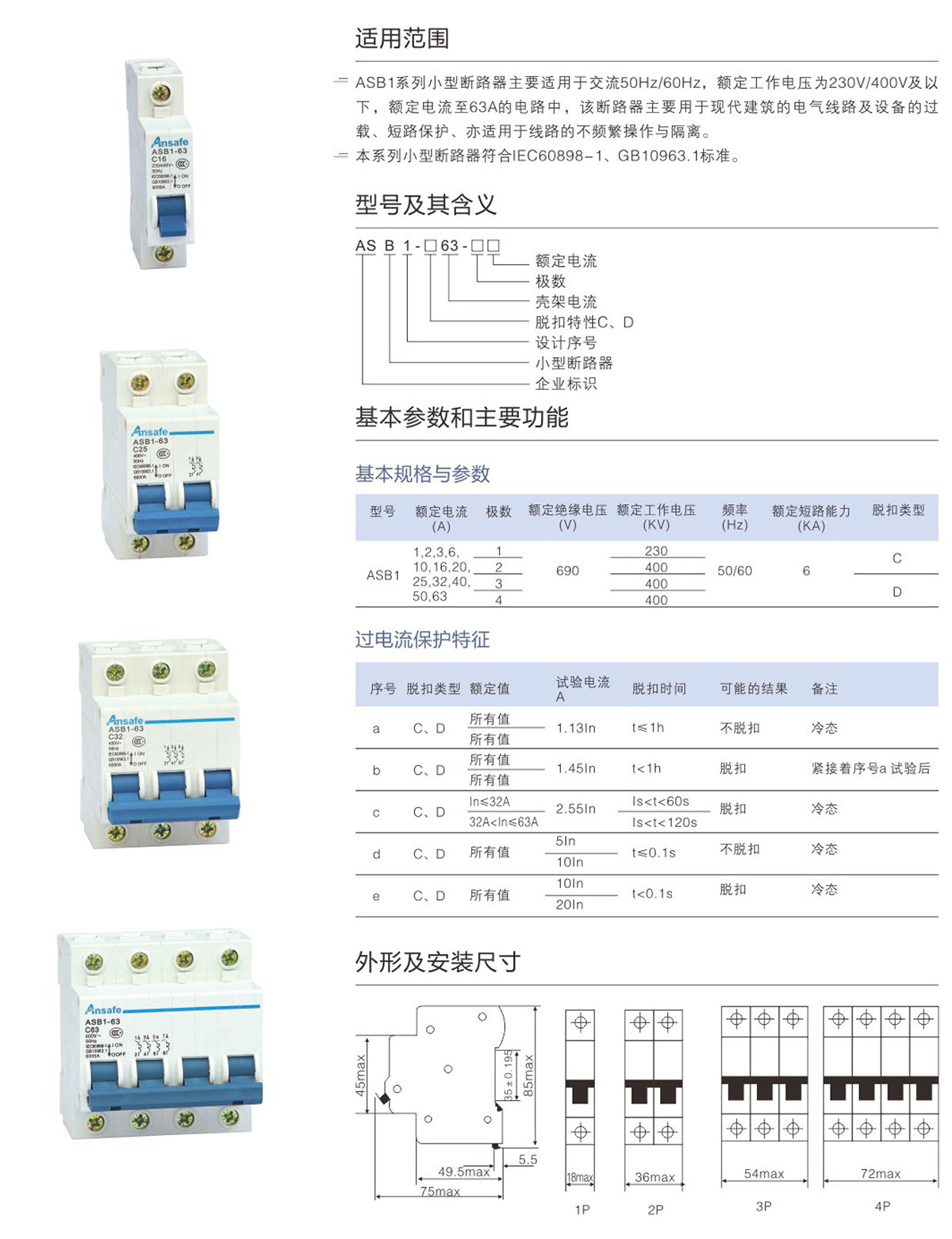ASB1-63 4P C25 小型断路器