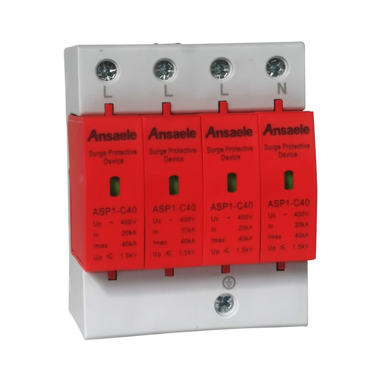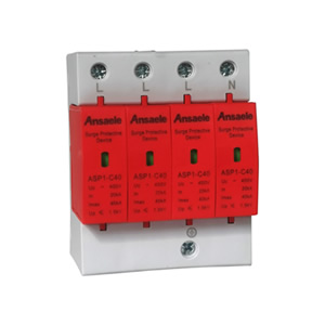 5.提供远程监控开关信号; 6.可实现微机连接; 7.通流量大; 8.残压极低; 9.窗口颜色表示保护器工作状态:绿色(正常) 红色(故障)应用:保护等级B级,容量,max:60KA-100KA ASP1-B系列:浪涌防雷保护器适用于交流50-60Hz,380及以下的TT,Tn等供电系统,广泛应用于各类电源二级(B级)过电压保护。一般安装在建筑物进线的低压主配电柜里或电压总开关柜等。 主要技术参数 型号 ASP1-B ASP1-B80/4 额定工作电压Un(V~) 220/380 220/380 持续工作电压Uc(V~) 385/420 385/420 允许保险丝强度(A) 63 100 标称放电电流(8/20Us)In(KA) 60 80 放电电流(8/20Us)In(KA) 100 120 电压保护水平Up(V~) ≤2.2/≤2.4 ≤2.4/≤2.6 工作环境 -40℃~+80℃ -40℃~+80℃ 响应时间t(ns) <25 <25 连接线径(mm2) 35硬线或35多股线 远端监控端子连接线径(mm2) 1.5硬线 遥信触点监控 ASP1-B/4-385-30X ASP1-B/4-385B-30X 报警器 ASP1-B/4-385X-30B ASP1-B/4-385X-30B 符合标准 GB18802.1(2002) GB/T 10194-1997 低压配电系统接线举例